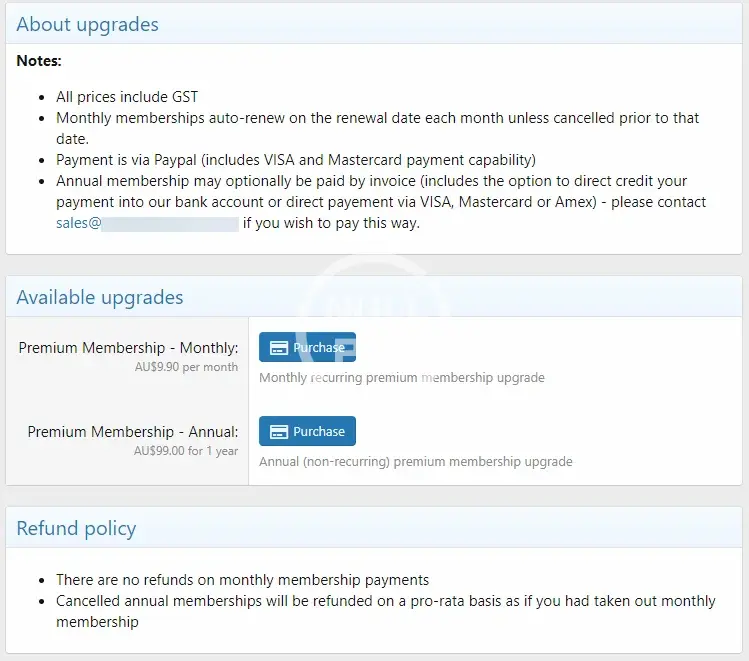 - Add information to the account upgrades page to explain things like tax, invoicing refund policies,