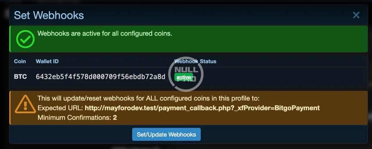 Click the Set/Update Webhooks button.
