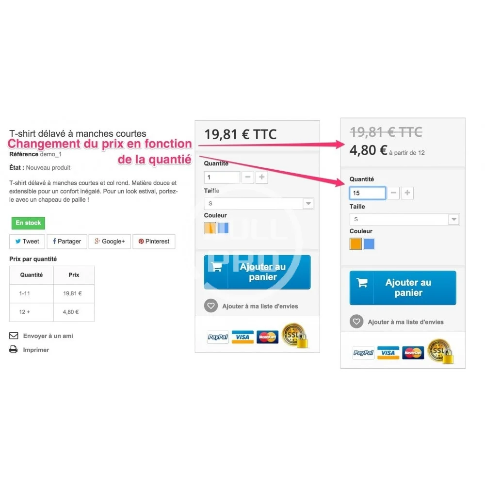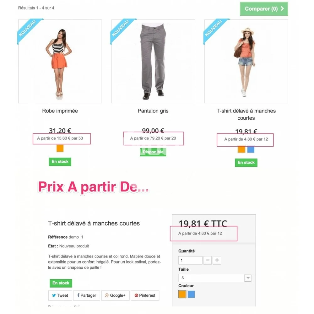 Enhanced management of your quantity prices and combinations prices in front-office : prices array display, order per multiple of minimal quantity, prices display instant display update.