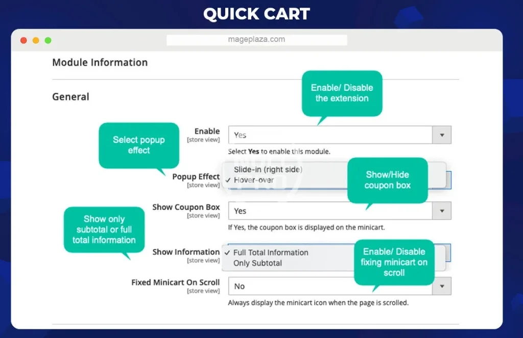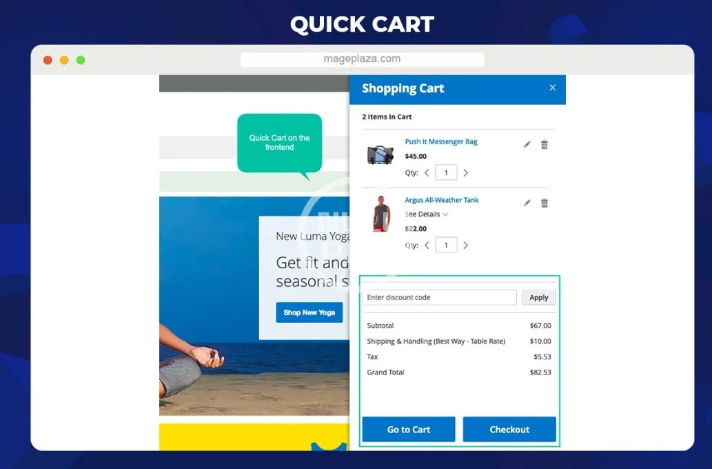 Quick Cart for Magento 2 modifies the minicart in Magento 2 Default in both design and function. With Quick Cart, customers can grab quickly all necessary information, add coupon code and go to checkout instantly. The advanced quick cart simplifies the checkout and increases conversion rate in Magento 2 online stores.