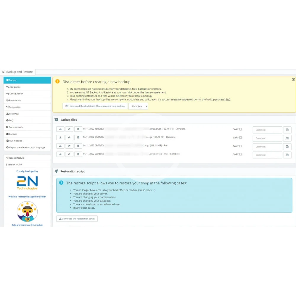 Backup and restore your shop easily.