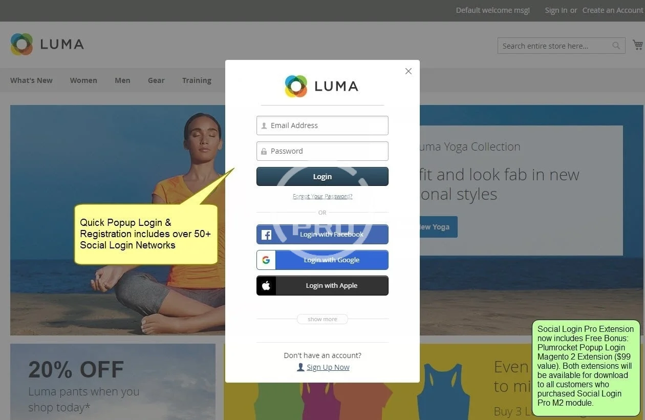 Magento 2 Social Login Pro allows visitors to register and place the orders at your store in a few clicks by signing in with one of 50 social networks. This module will greatly increase number of registered customers as well as add magento social share at your website.