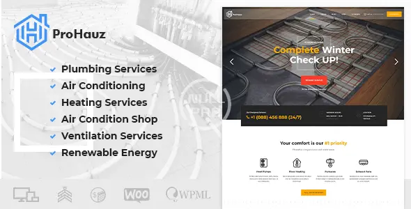 ProHauz is a WordPress Theme for home improvement and maintenance services such as plumbing, ventilation, heating, air conditioning and solar system services but works well with other businesses as well. This WP theme is built having in mind actual needs of businesses providing home improvement and repair services and their clients. This is a modern theme with 6 demos and many well designed inner pages.ProHauz WordPress Theme for HVAC services is responsive and retina ready.