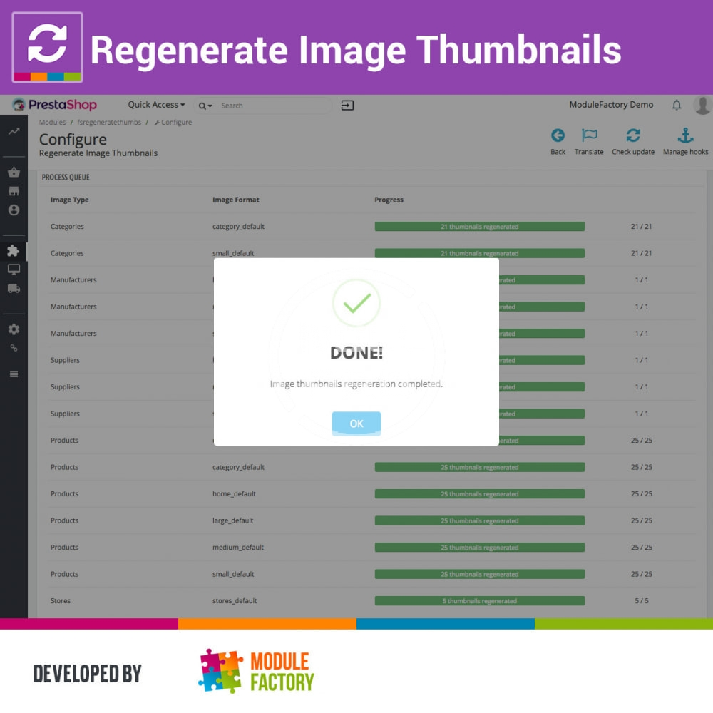 Massively regenerate the thumbnail images of your store by page type and image format