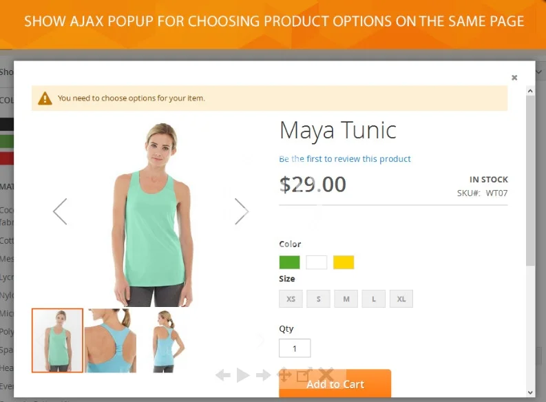 - allow users to select the product options in Add to cart pop-up window page reload