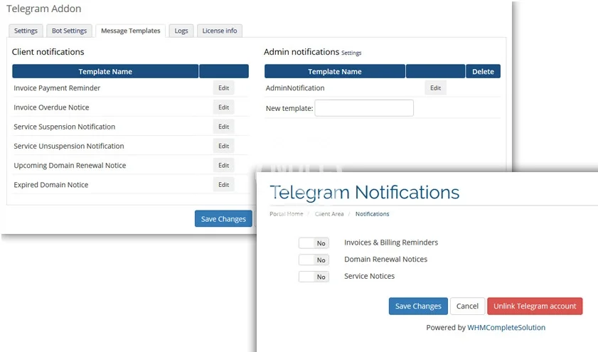 - Telegram Addon client and admin not nulled