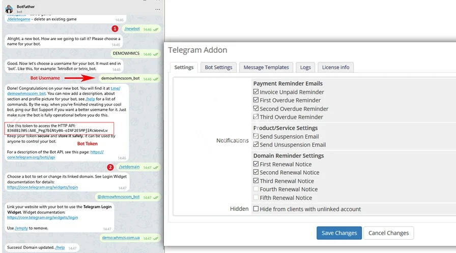 - Fill Bot Username and Token in the Bot Settings tab.
