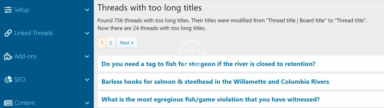 By default thread titles are formatted like "Thread title | Board title". If a thread title is too long (more than 70 characters), the addon applies a template modification turning "Thread title | Board title" into "Thread title". In addition it shows in ACP a list of thread titles that are longer than 70 characters even after dropping the " | Board title" part (for manual title editing).