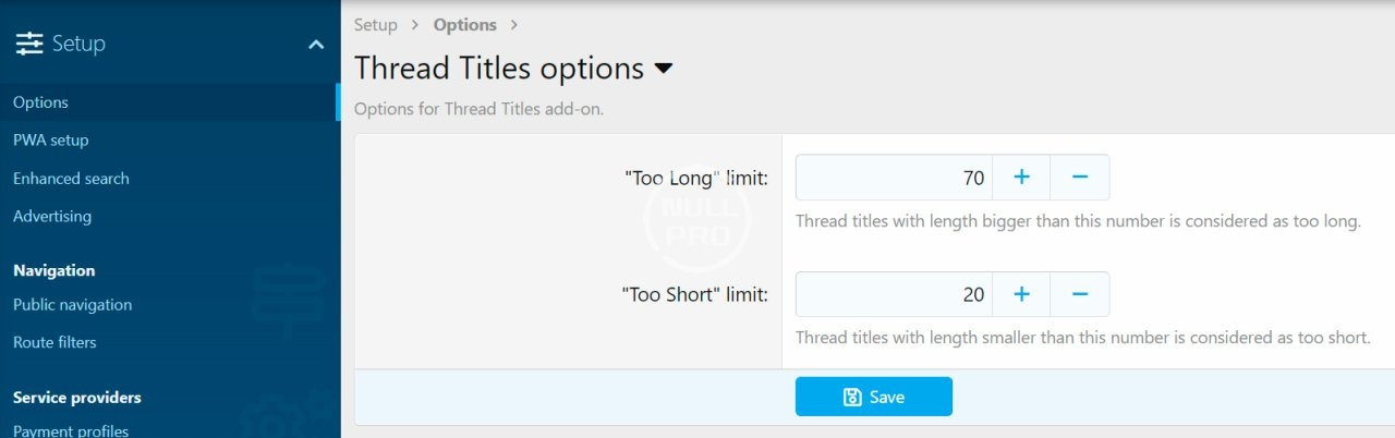 - By default thread titles are formatted like "Thread title | Board title".