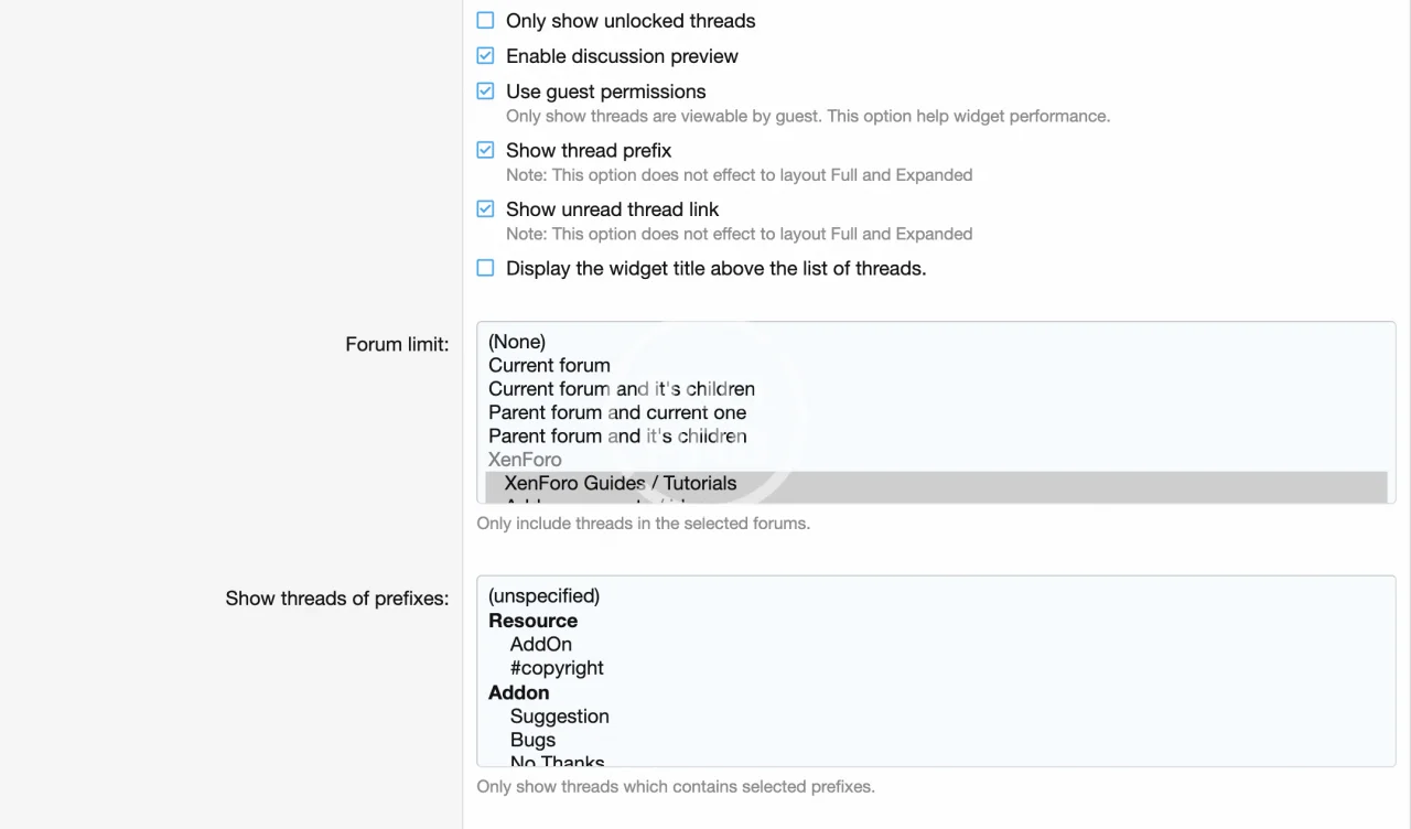 - Support more options to widget threads. Much like Widget Framework threads for XF1.X