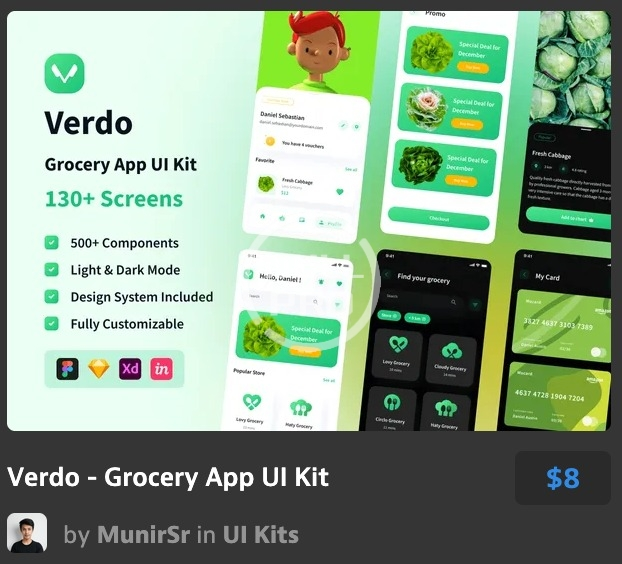 - Verdo - Grocery Mobile App UI Kit with 130+ screens and 500+ components
