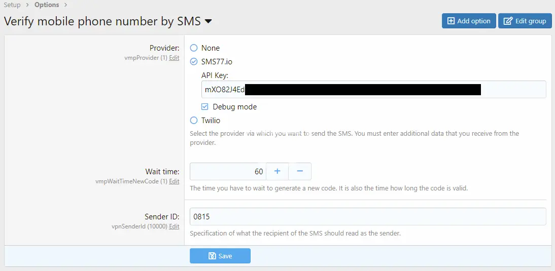 As there are a large number of SMS providers, it is possible to add further providers to this add-on with little programming effort.