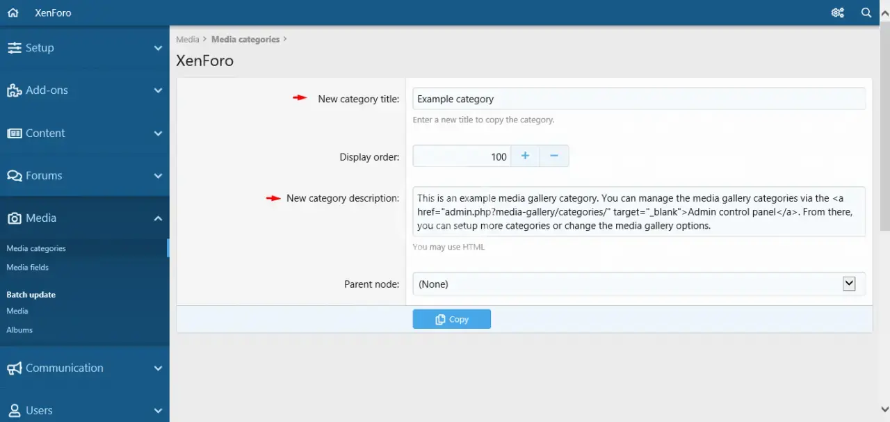 - This add-on allow you to copy your categories for the XFMG when creating new categories.