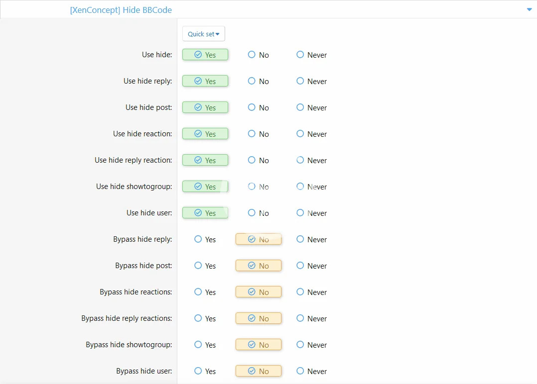- This addon gives users the ability to hide their content using BBCode.